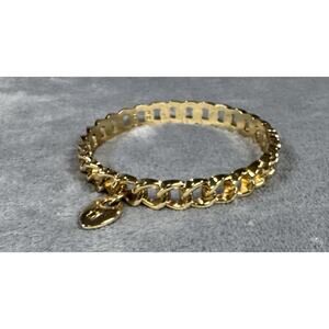 Vintage Graziano Gold Tone Chunky Chain Bangle Bracelet w/ Heart Padlock Charm
