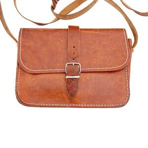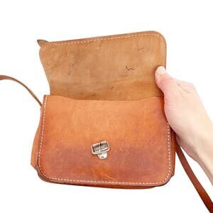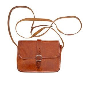 Vintage Grecian Tan Leather Crossbody Made in Greece