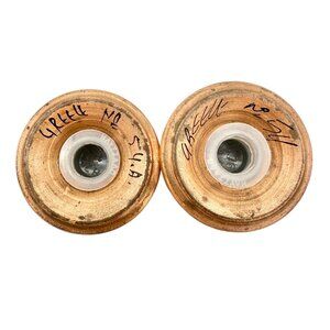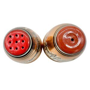Vintage Greek Copper Salt and Pepper Shakers Painted Black & Red Design 2" Tall