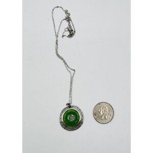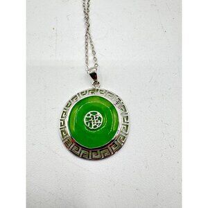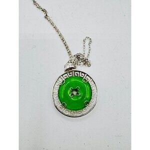 Vintage Greek Key & Chrysoprase Sterling Silver Necklace