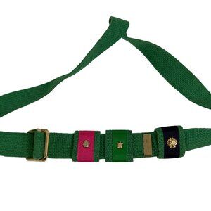 Vintage Green Adjustable Woven Belt Pink Green Navy Ribbon Accents w/ Charms
