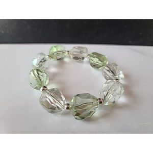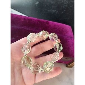 Vintage Green And Clear Beaded Stretchy Plastic Bracelet