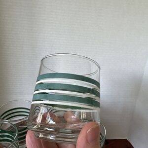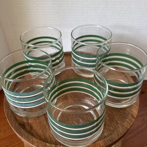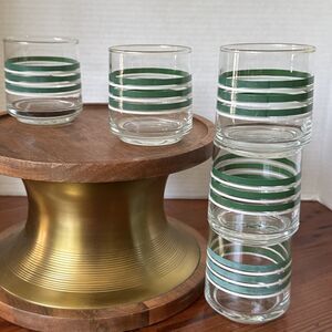 Vintage Green And White Small 8 Ounce Striped Juice Glasses Set of 5