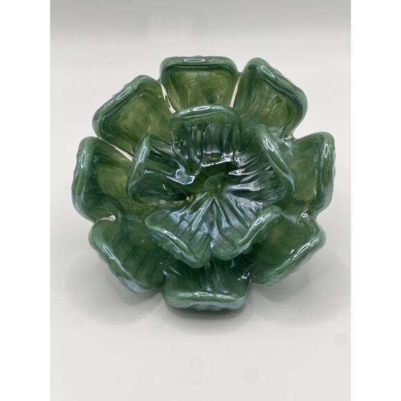Vintage Green Art Glass Floral Sculpture Decorative Display Piece
