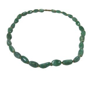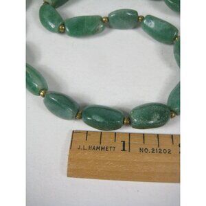 Vintage Green Aventurine Stone Beaded Necklace 23 Inch Brass Bead Jewelry