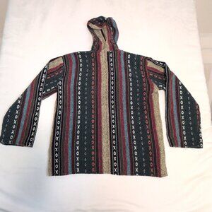 Vintage Green Baja-Style Woven Hoodie Pullover XL (Women)