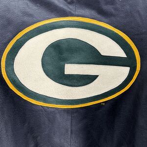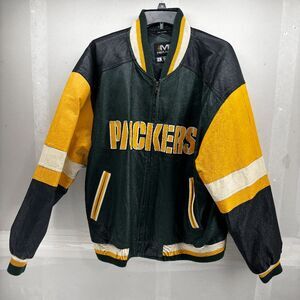 Vintage Green Bay Packers Majestic Leather Varsity Jacket Size Large Spellout