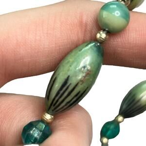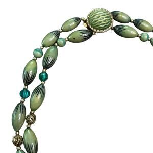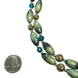 Vintage Green Beaded Layered 2 Strand Necklace 20.25”