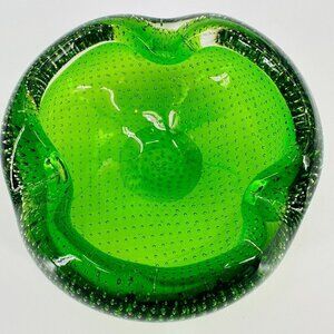 Vintage Green Blown Glass Retro Small Bubble Ashtray Holder