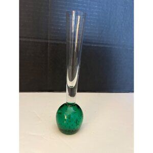 Vintage Green Bubble Glass Bud Vase MCM 6 1/2”