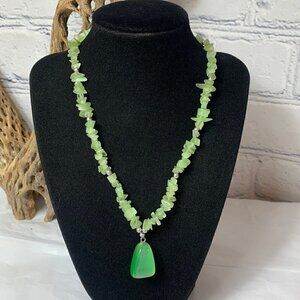 Vintage Green Cats Eye Pendant Gem Necklace