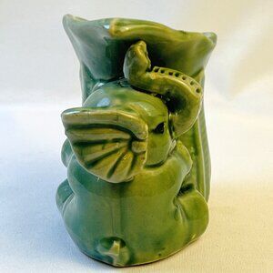 Vintage Green Ceramic Baby Elephant Planter Hugging Leaf Design 4” USA