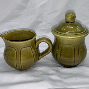 Vintage Green Ceramic Creamer & Sugar Bowl Set With Lid