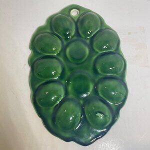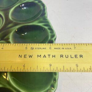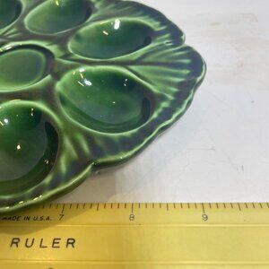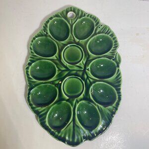 Vintage Green Ceramic Deviled Egg Plate Tray With 12 Egg Slots & Center Well 10.