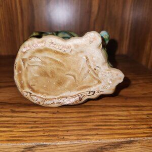 Vintage Green Ceramic Elephant Vase with Unique Trunk Design & Glossy Finish