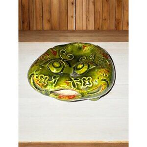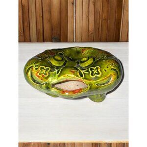 Vintage Green Ceramic Frog With Hand-Painted Details Figurine