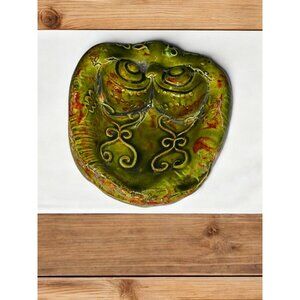 Unique ceramic frog figurine adds a touch of whimsy to your indoor space. Vibrant green glaze with hand-painted floral accents.