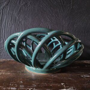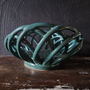 This vintage ceramic basket, with its intricate lattice weave design, adds an elegant touch to any table setting. Its sturdy construction ensures durability while its unique design serves both functional and decorative purposes. A wonderful piece for collectors and those who appreciate timeless aesthetics.