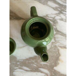 A mid-century ceramic teapot crafted in a vibrant green glaze. Suitable for tea lovers, collectors, or adding a touch of vintage charm to your kitchen.