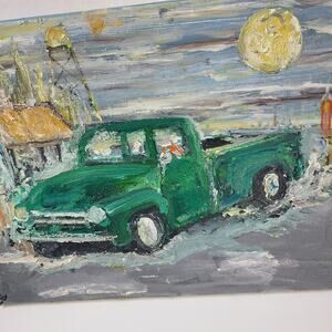 Vintage Green Chevy Truck Down By The Ocean Full Moon Fishing Shack Painting