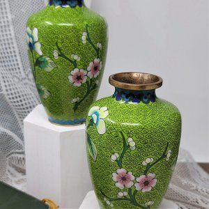 Vintage Green Cloisonné Vases One Matched Pair