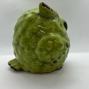 Vintage Green Crackle Glaze Barn Owl Figurine Rustic Country Home Decor 5" Ceramic