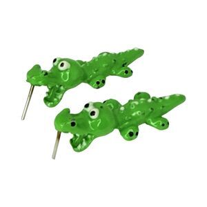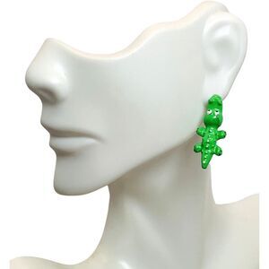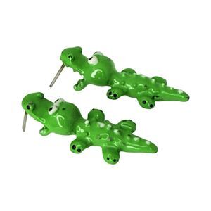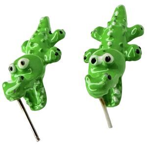 Vintage Green Crocodile Alligator Stud Earrings 1 1/8" Fun Novelty 80's Jewelry