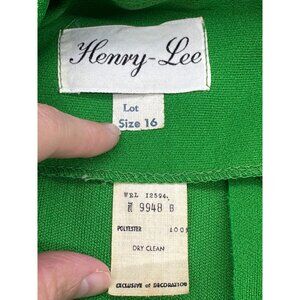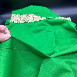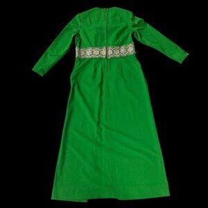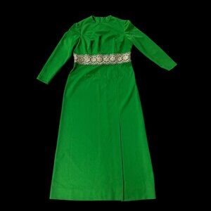 Vintage Green Dress Henry Lee Gold Lace Trim Size 16 Polyester 1960s Gown Glam