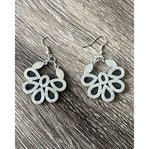 Vintage Green Earrings Pedal Floral Plant Silver Green Boho Western Style