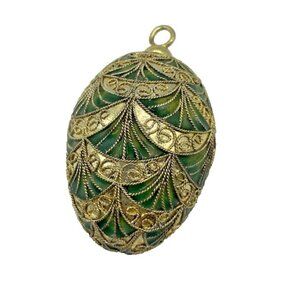 Vintage Green Enamel Egg Ornament Gold Tone Christmas Holiday Tree Decor