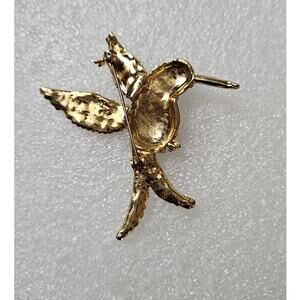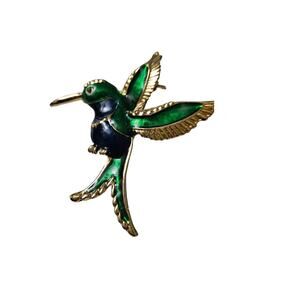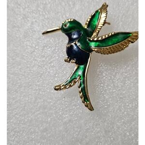 Vintage Green Enamel Hummingbird Brooch Pin Gold Tone Bird Jewelry