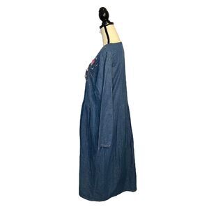 Vintage Green Field Denim Chambray Dress Rhinestones Studs Embroidery Flowers MD