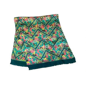 Vintage Green Floral 100% Silk Rectangular Scarf With Fringe