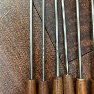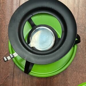 Vintage Green Fondue Set with Wood and Stainless Forks