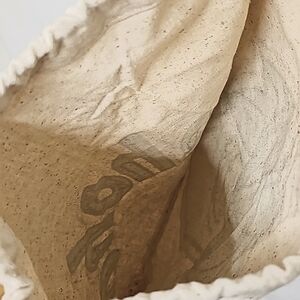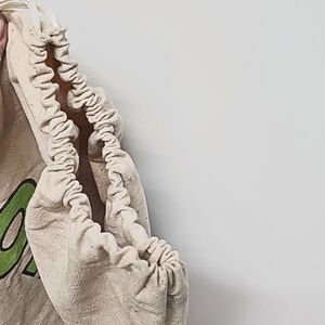 Vintage 70's Green Giant canvas drawstring tote. Tan canvas with dark speckles, screen print of Green Giant/ho ho ho, draw string with large wooden green bead. EUC, smoke free.