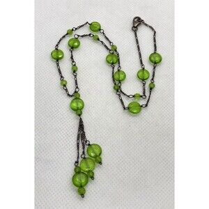 Vintage Green Glass Beaded Pendant 18'' Necklace Sterling 925 Silver 8g Patina