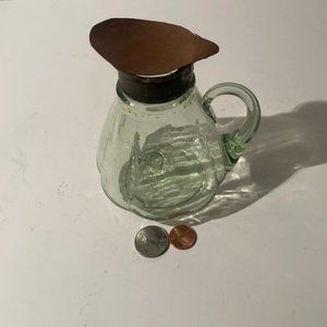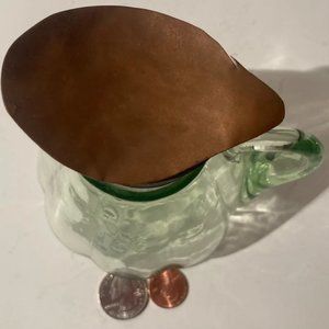 Vintage Green Glass Bottle with Copper Top, Syrup Bottle, Creamer, 6", Depressio
