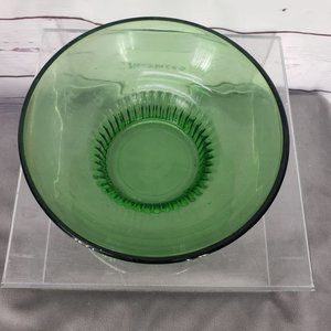 Vintage Green Glass Bowl by EO Brody Co with Scalloped Rim Pedestal Bowl