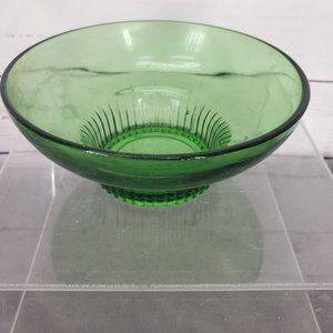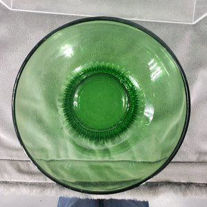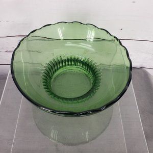 Emerald green glass bowl with scalloped edges at the top rim and a ribbed pedestal. Perfect as a candy dish, floating candles, serving dish, or as a catch-all.