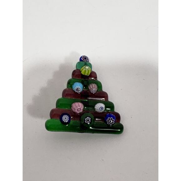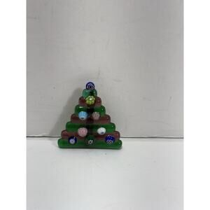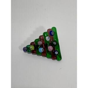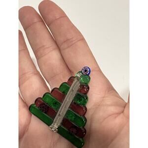 Vintage Green Glass Christmas tree Floral Handcrafted Pin Brooch