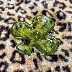 Vintage Green Glass Club Mini Dish. 60s 70s era. Measures ~4" wide. Good vintage condition <3