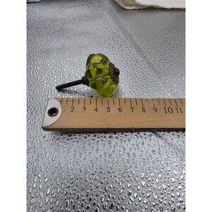 This vintage drawer knob features an elegant green glass design with antique bronze hardware, adding a touch of sophistication to furniture. The intricate craftsmanship and unique color make it a distinctive choice for enhancing drawer aesthetics, while its practical design ensures easy installation and durability.