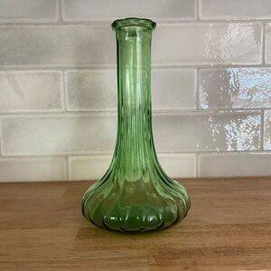 Vintage Green Glass Floral Vase Flared Bottom Home Decor MCM