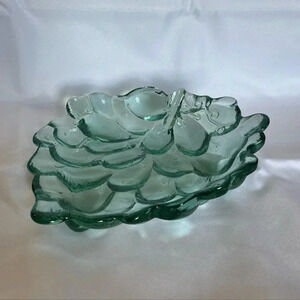 Gorgeous Thick Green Glass Grape Shaped Footed Trinket Bowl Dish. Perfect for serving, decor, or by the front door.