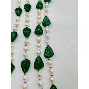 Vintage Green Glass and Fresh Water Pearls Necklace
