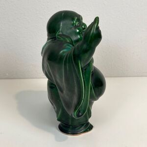 Vintage Green Glazed Ceramic Buddha Figurine 8.5”
