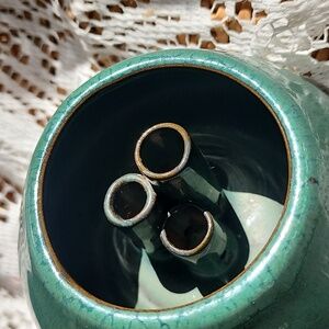 Vintage Green Glazed Crackle Rim 3 Hole Flower Frog