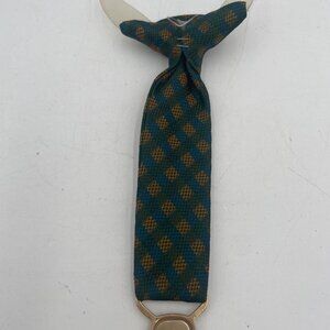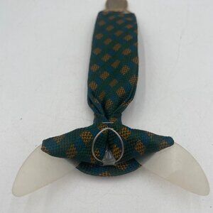 Vintage Green & Gold Plaid Men’s Tie Red & Gold Enamel Military BadgeVeterans of