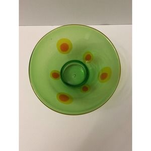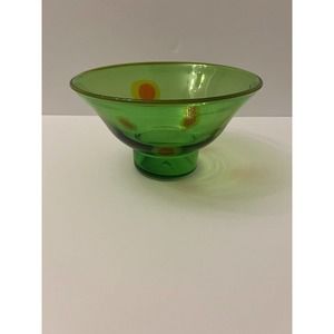 Vintage Green Hand Blown Glass Bowl Orange Dot Design.