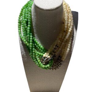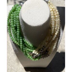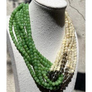 Vintage Green Jade Agate Glass Multi Strand Beaded Women’s Necklace Sz 19”